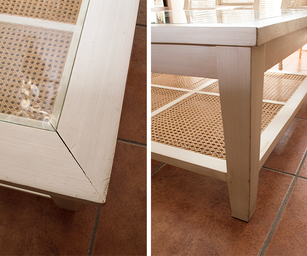 La mesa de centro puede que necesite una mano de pintura, o puede que la quieras cambiar de color? ( mira aquí para ver como cambie el color de las sillas).