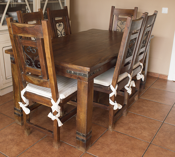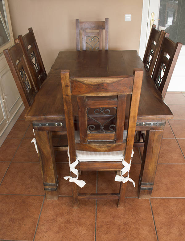 Mesa comedor + 6 sillas : ( R.028) Descripción: madera maciza + forja, estilo rústico