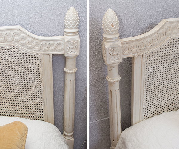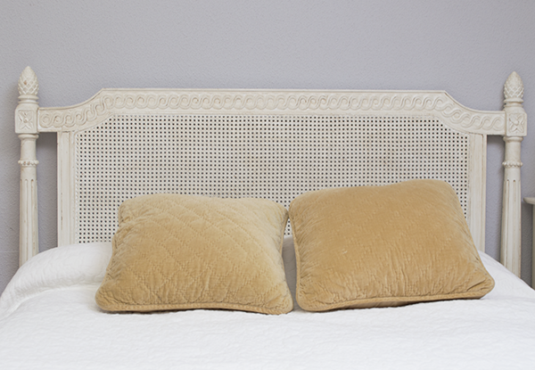 Cabecero rejilla cama 150 : ( R.022) Descripción: cabecero para cama de 150 en madera maciza, color blanco decapé
