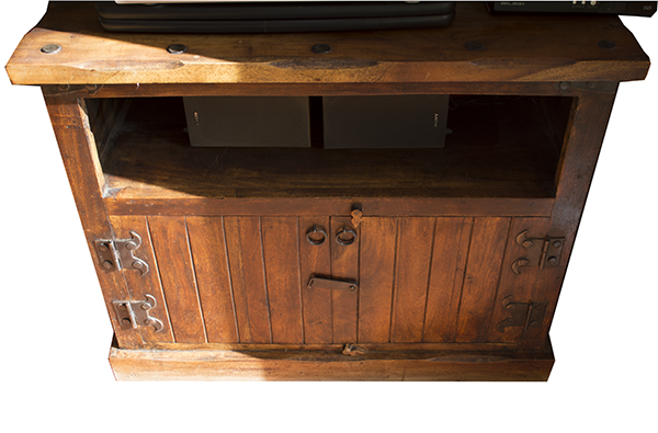 Descripción: mueble Tv madera maciza y forja negra