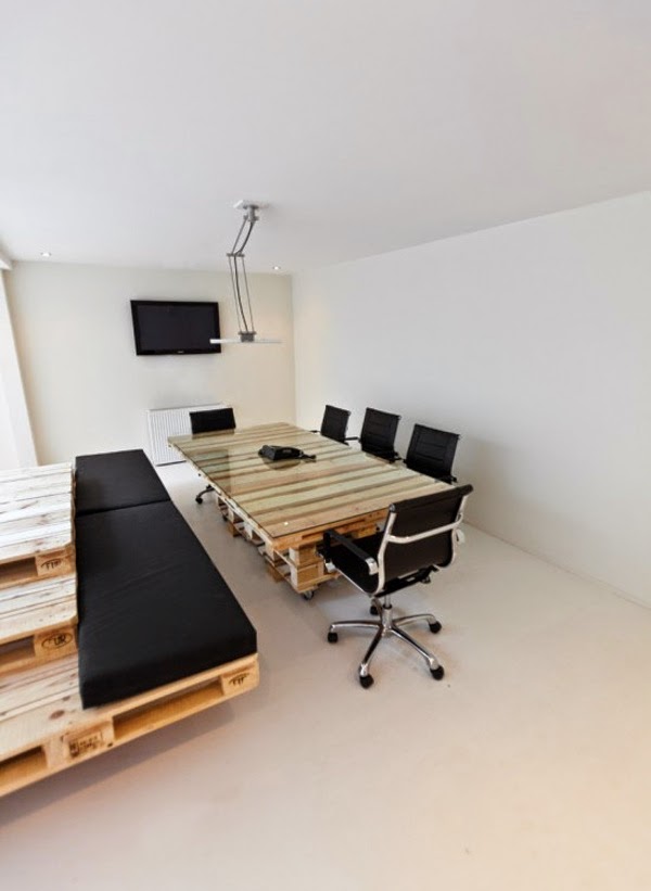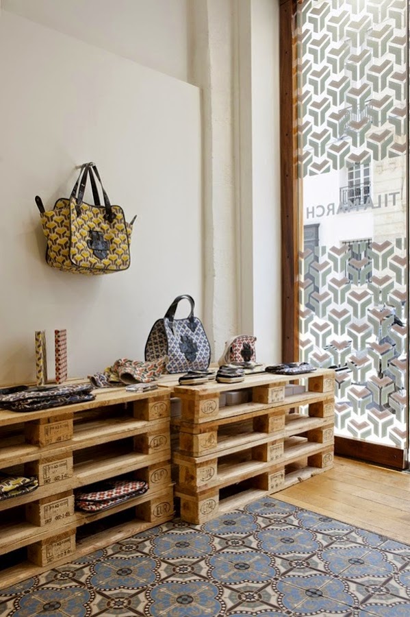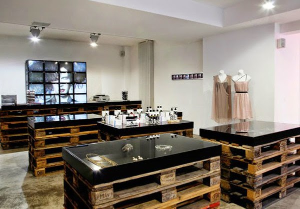 Entre ellos los palets y claro... diréis ¿otra vez los sempiternos palets? pues sí no lo puedo remediar; pero esta vez utilizados como parte del mobiliario y expositores para empresas. Geniales para aquell@s que monten un showroom y sea un espacio efímero o quieran un toque industrial y diferente a su negocio.