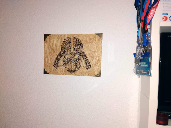 Y aquí está el otro cuadro de Darth Vader, para otra amiga y bloguera, muy friky ella ;). Este me costó mucho hacerlo porque el dibujo tiene demasiados detalles para la madera tan pequeña, para la próxima vez ya lo sé.