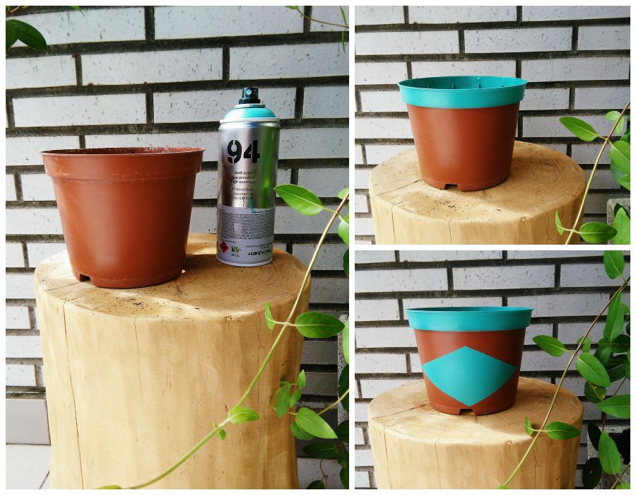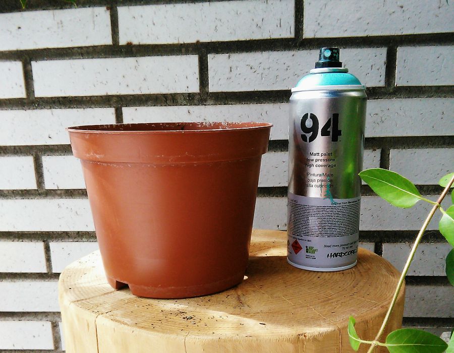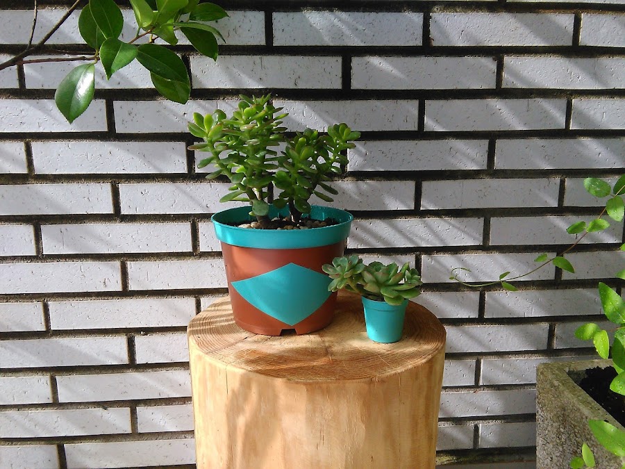 ¿Os acordáis cuando os mostré mis macetas de plástico decoradas con pintura neón? Aquellas son grises pero ya os comenté que también podríamos reciclar macetas de plástico de cualquier color. Dicho y hecho, en la primera oportunidad y un ratito libre he reciclado una maceta de plástico marrón, que son en las que normalmente nos venden las plantas en la floristería o algún vivero.