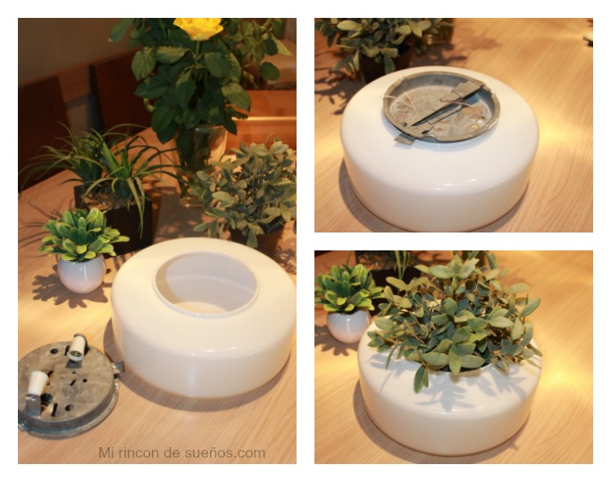 ¿Por qué os cuento esto ? para que veáis , que a veces, puedes "darle la vuelta a la tortilla,"y conseguir una pieza original, para decorar. En mi caso un plafón se ha convertido en un macetero original.