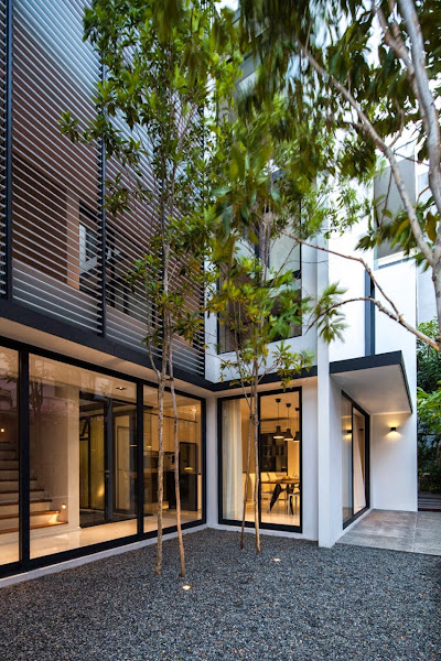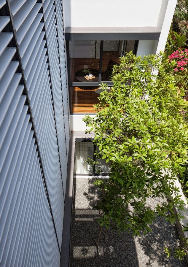 La masificación pidió una serie de espacios llenos y vacíos para reducir el aumento de la masa mientras se mantiene una cierta quietud en el respeto de su contexto. Amplias terrazas, balcones de profundidad y dos patios en el edificio para enfriar y dar sombra en el intenso calor tropical y la luz solar. Persianas accionables por encargo en los patios y en los cuartos de baño permiten una ventilación cruzada pasiva.