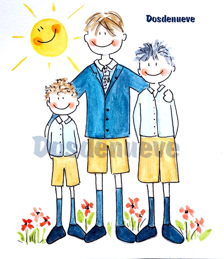 La primera acuarela, en la que aparece Alberto con sus hermanos, la utilizamos para el diseño de los marcapáginas y para la portada de las libretas.