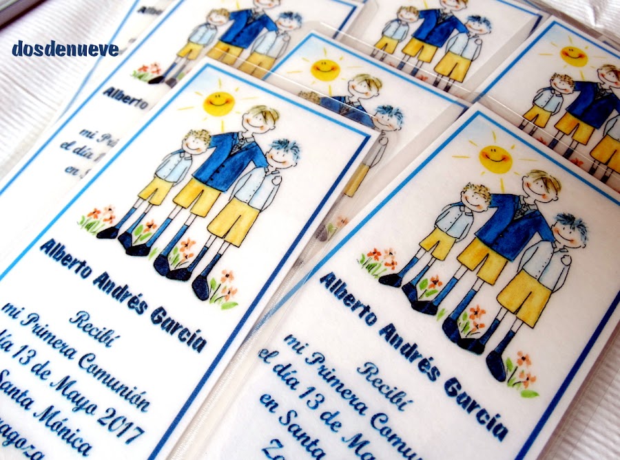 Bueno... hasta aquí, os hemos contado todo lo relacionado con la parte de la papelería personalizada de la Primera Comunión y, en seguida, pasamos a enseñaros el candy bar que preparamos para los niños y los no tan niños...