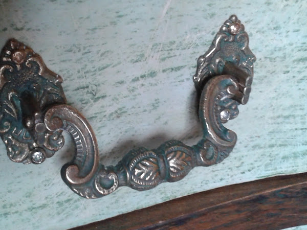 Posteriormente hice una patina con cera incolora en pasta, barniz a la cera Mongoy, trementina y oleo blanco, negro y verde vejiga.
