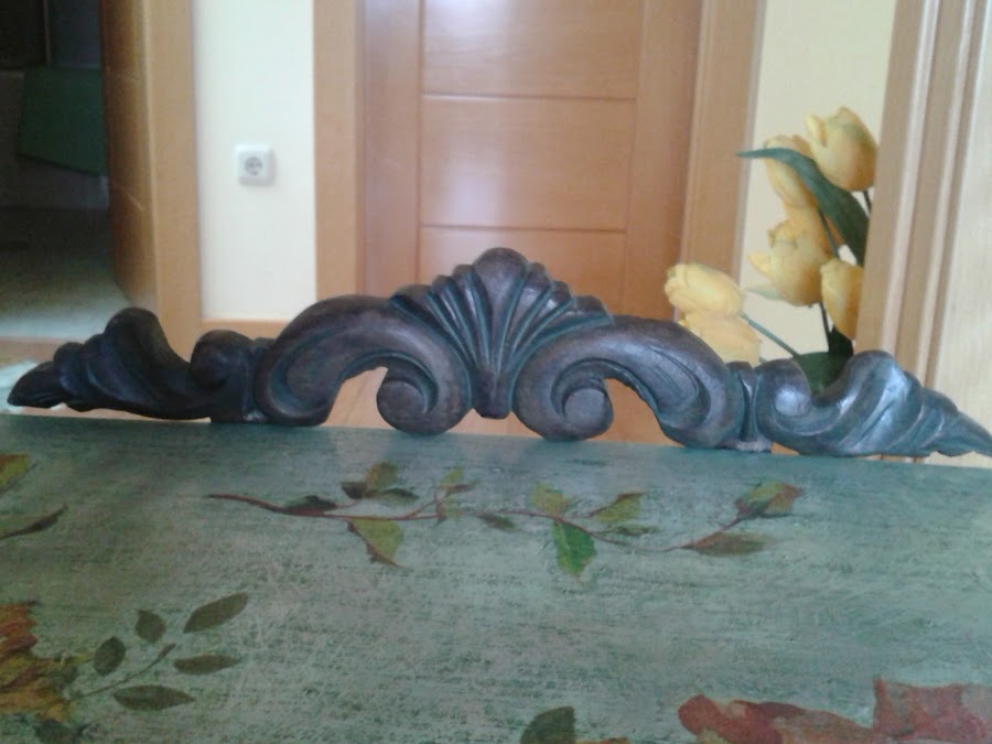 Luego le di estuco por alrededor de los motivos, que es como una pasta densa que queda como con relieve.