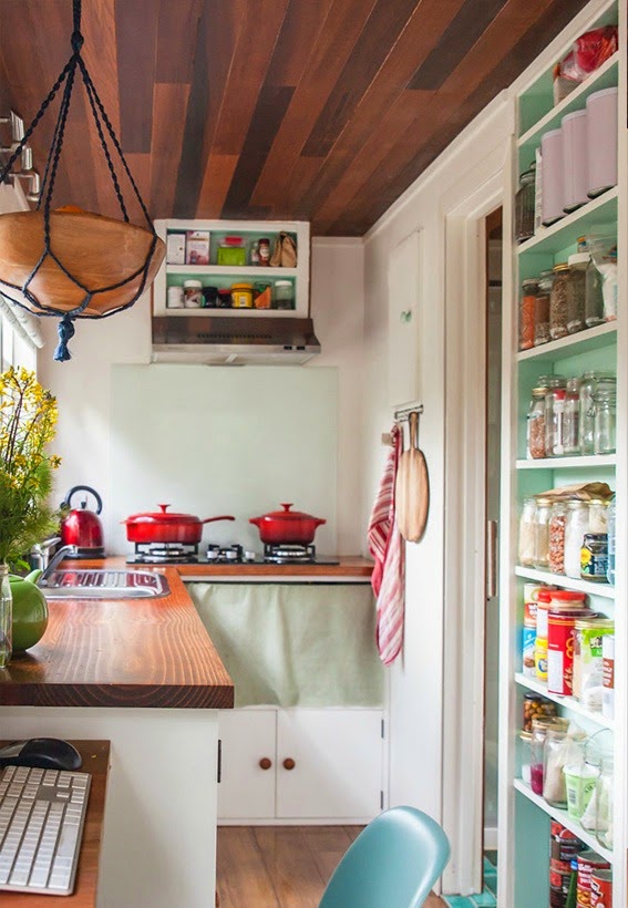 Despensa y escritorio se ajustan para ser útiles sin ocupar más espacio del necesario.