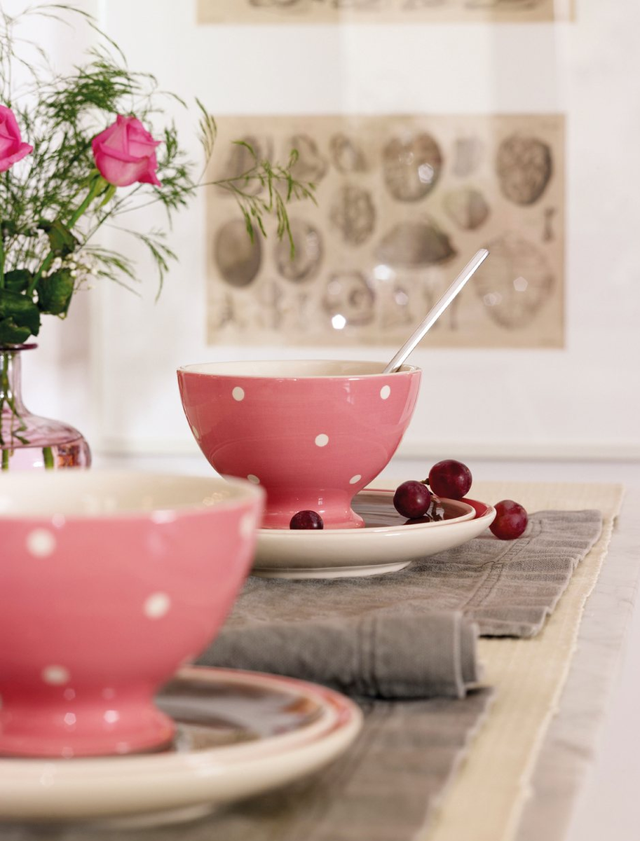 Es el tono que inspira sentimientos amables y profundos, el color del amor altruista. En todas sus variedades, el rosa se identifica con la gentileza, la tranquilidad y el sentimiento de protección. La cerámica de colores pastel está de moda, toda una vajilla rosa puede resultar excesiva, pero si combinas piezas de este color con platos grises o blancos conseguirás una mesa alegre y actual. Tendremos un toque naïf asegurado si vestimos la cama con sábanas en rosa pastel con cojines estampados en rosa, fucsia y blanco.