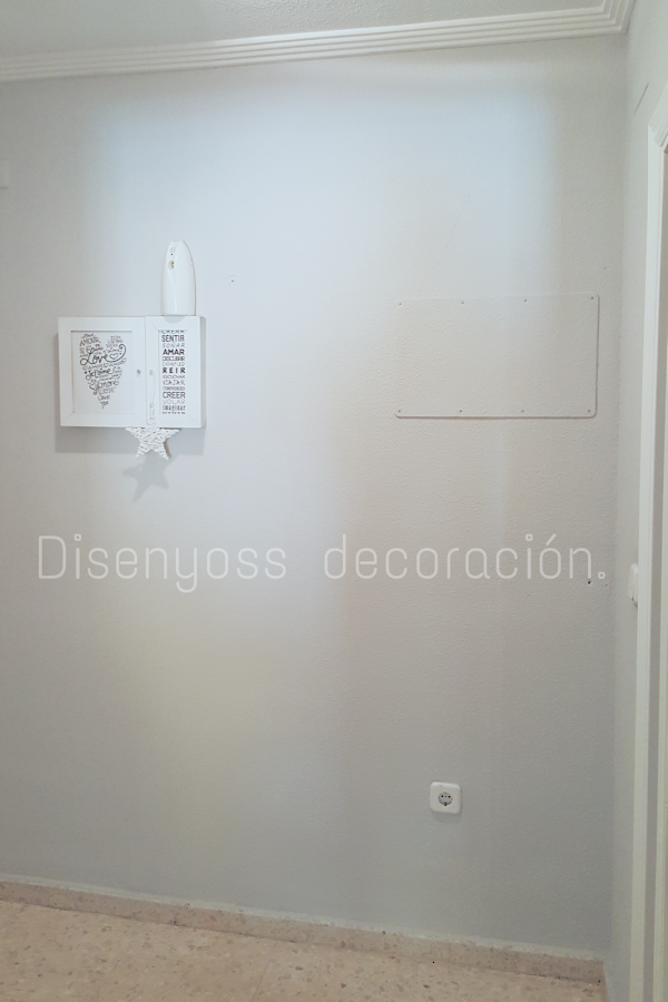 Esta columna decidimos pintarla en el mismo color pero dos tonos mas oscuros y asi destaca mas el colgante de pared con letras blancas.