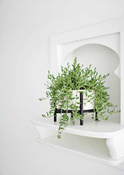 5.- El verde da vida: Las plantas añaden un elemento "vivo" a los espacios. Ese toque de verde es ideal para cualquier estancia, pero quizás en el pasillo cobre más protagonismo. Dependiendo del espacio se puede añadir una planta en una maceta en el suelo, colgante o como en este caso que se ha usado el viejo rincón del teléfono.