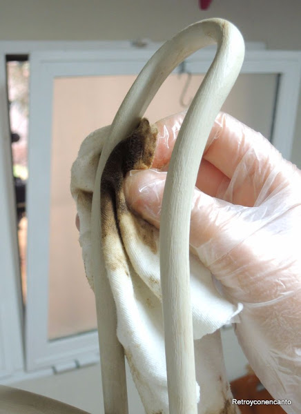 Tras el barniz, mezclamos cera con betún de judea para darle la pátina que nuestra cliente solicitaba.