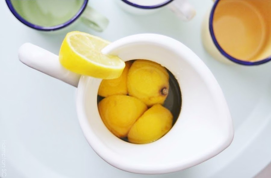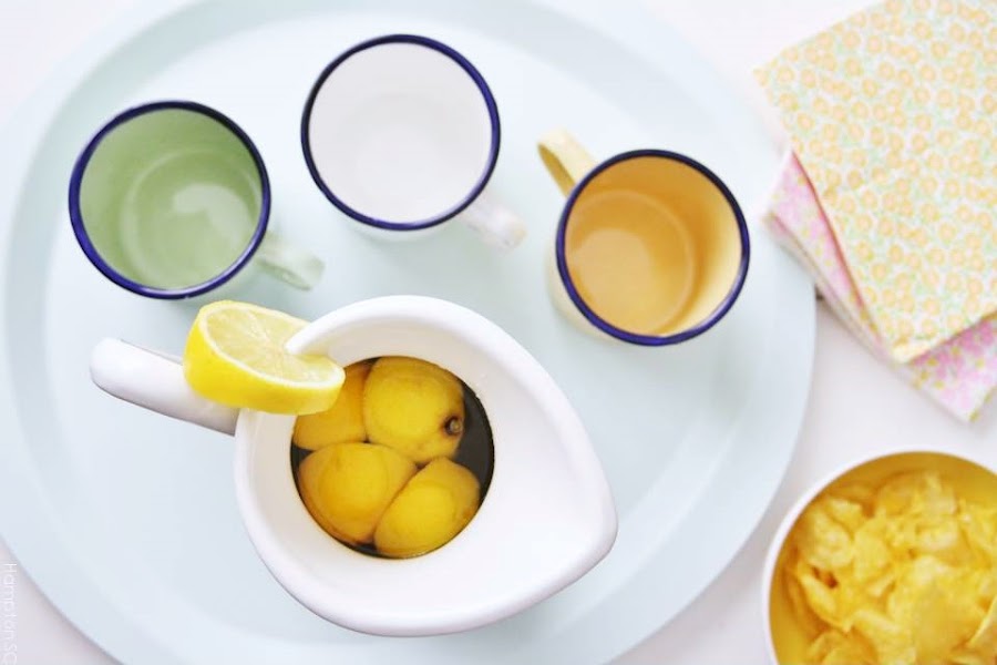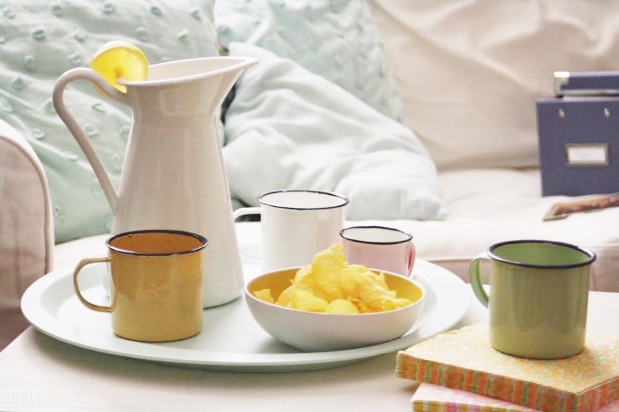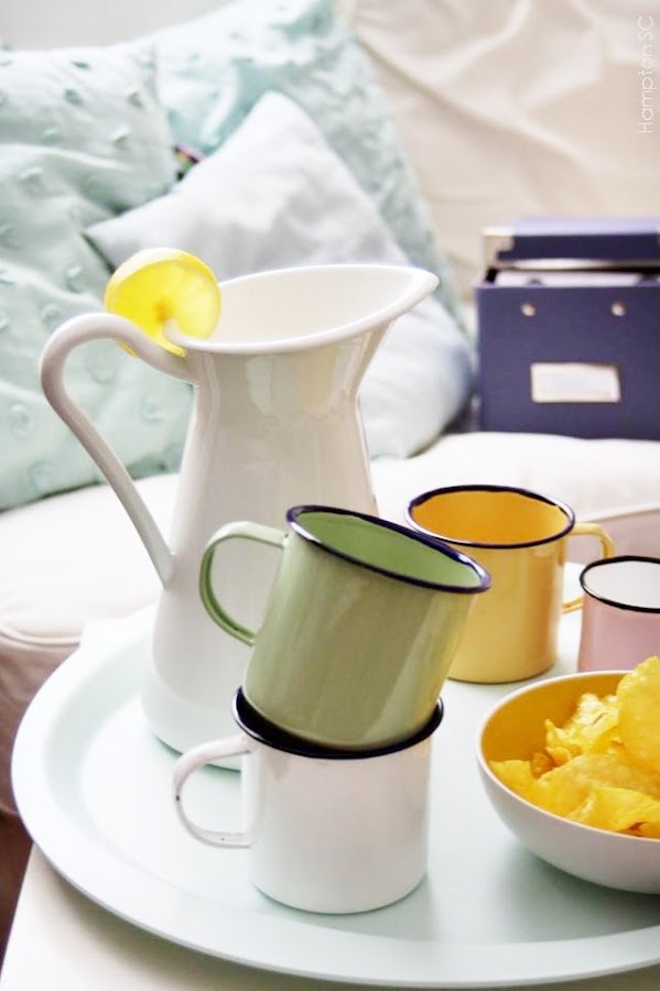 Preparé limonada y estrené unas tacitas de peltre esmaltado en unos
