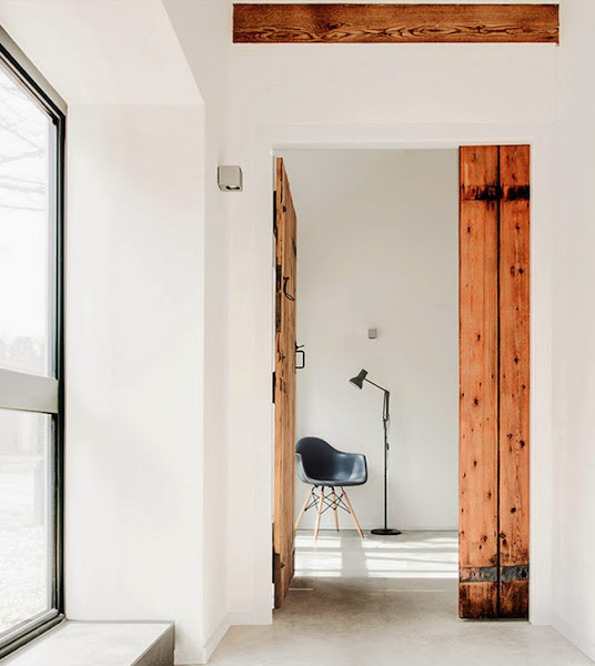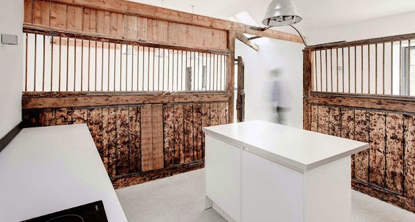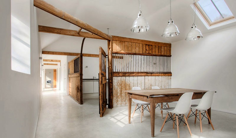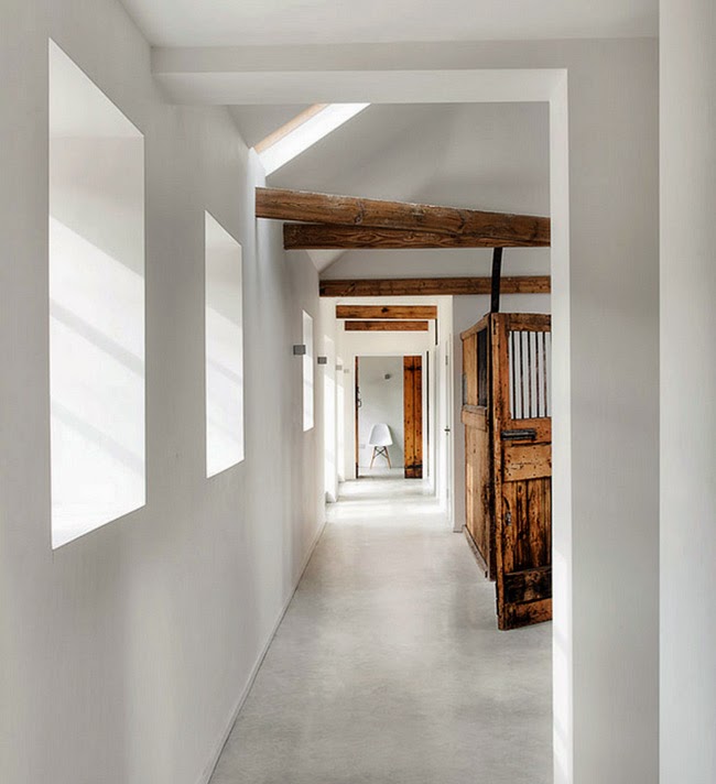 Los materiales naturales(y originales) y el color blanco que invade todo este espacio hacen en él un carácter rústico renovado. Se trata de un antiguo establo en ruinas que se conviertió en una maravillosa casa minimalista.