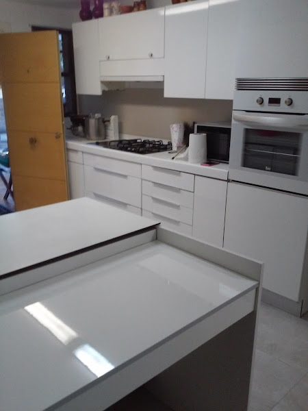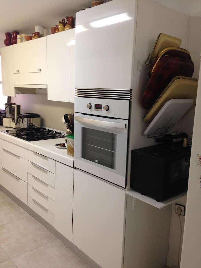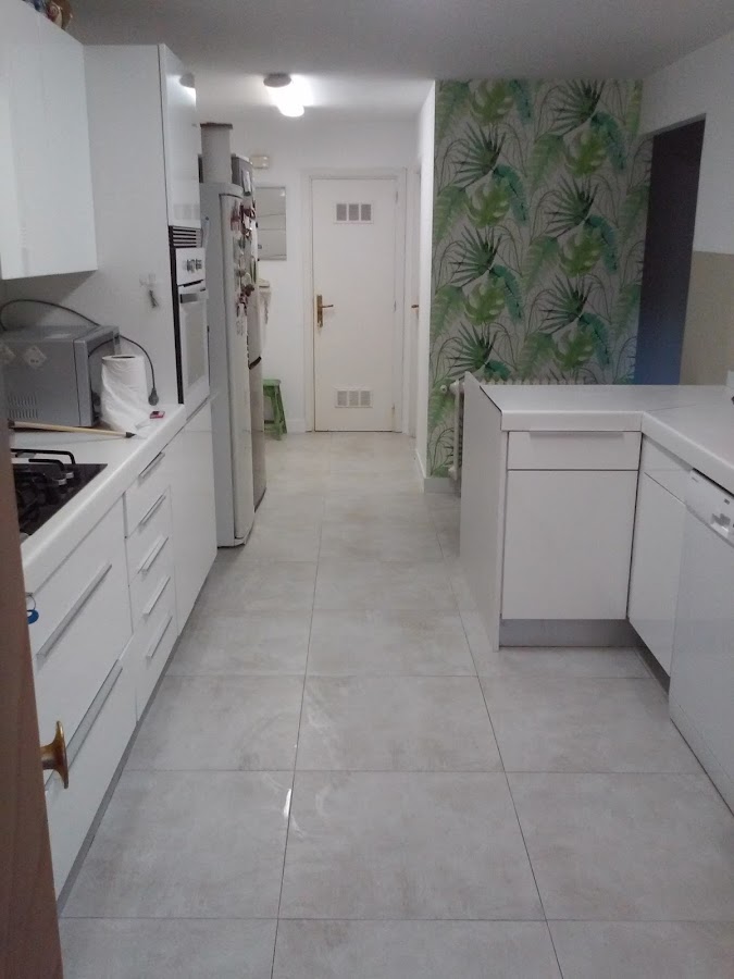 El trabajo ejecutado no ha sido otro más que un lavado de cara, hemos cambiado el suelo por otro nuevo y se han sustituido todas las puertas de la parte baja de la cocina por unas nuevas. Ya sólo con esos dos cambios la cocina, ha ganado en amplitud de forma alucinante.