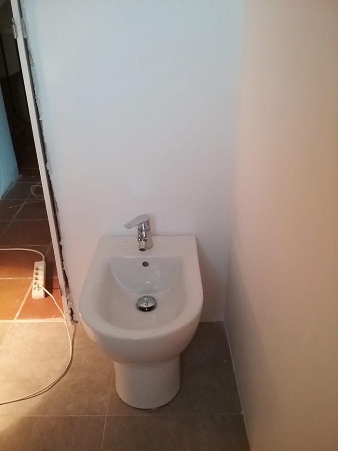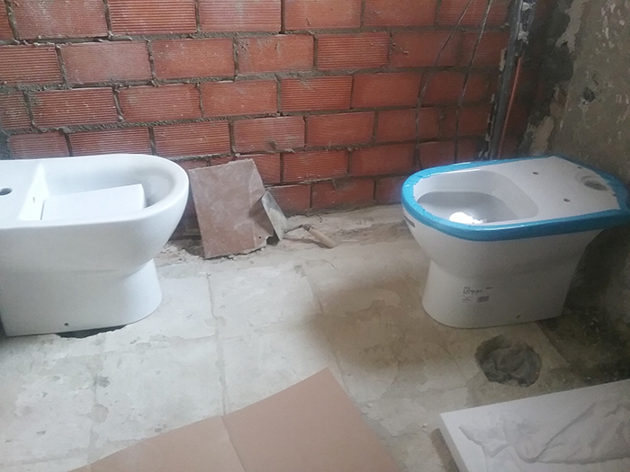 Como en todas las reformas, siempre surge alguna nueva idea sobre la marcha y en este caso, decidimos añadir unos centímetros más al baño porque la zona del inodoro y el bidé estaba muy justa. Como en la habitación colindante teníamos previsto hacer un armario empotrado, tiramos el tabique de separación y lo desplazamos un poco.