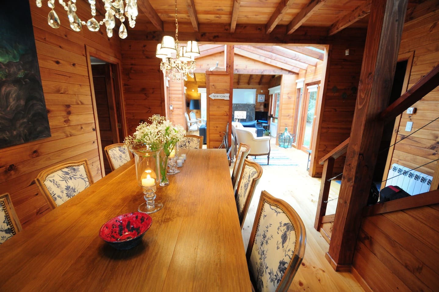 En este artículo quiero compartirla con Uds., ya que desde el primer momento me ENAMORÓ. Me deslumbró por el buen gusto de su ambientación y por ostentar, en cada uno de sus rincones, el equilibrio justo entre la rusticidad característica de una “cabaña” y los toques de elegancia y sofisticación aportados por muebles, tanto de diseño contemporáneo, como de estilos clásicos. Una heterogeneidad exquisita e inspiradora!!!!