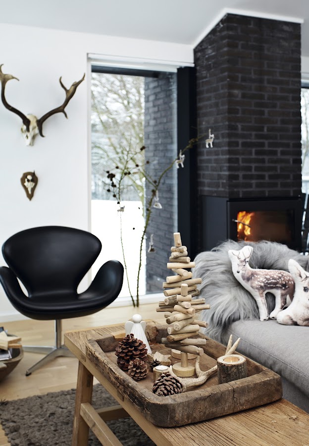 Los tonos neutros y naturales se proponen como los protagonistas para este rincón de ambientación navideña natural y sobria, y con solo algunas notas de color que realzan el conjunto. La casa resulta un refugio del bullicio cotidiano, y su dueña, Betina Stampe de Bloomingville adora la Navidad y su casa de campo es fiel reflejo de ello.