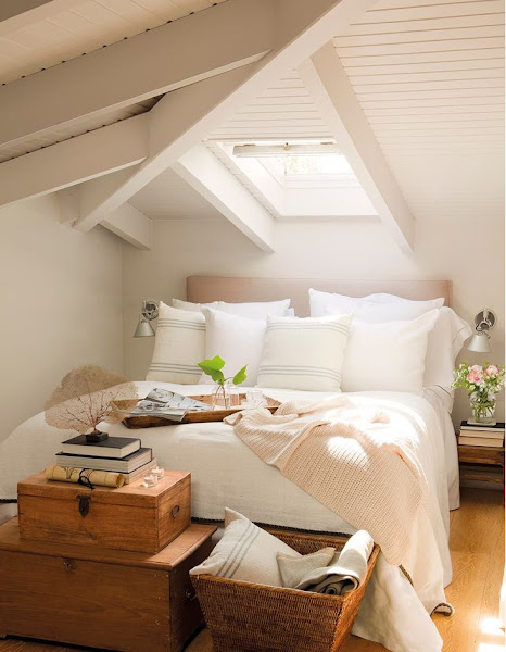 Por eso un día como hoy me gustaría estar en sitios como estos, buhardillas. ¿Qué os parecen? Siempre me ha parecido que las buhardillas tienen algo de romántico y bohemio, como si fuese un escondite, quizás porque están en lo más alto de un edificio o por su forma diferente o por la manera que tiene la luz de entrar al interior y todo se ve diferente con esas luces y sombras... ¡No sé, pero me encantan!