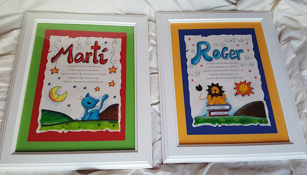 Anna tuvo su segundo hijo y sus compañeros de trabajo le regalaron una lámina de nacimiento para cada uno de los dos hijos de la pareja. El nuevo miembro y su hermano mayor de 3 años.