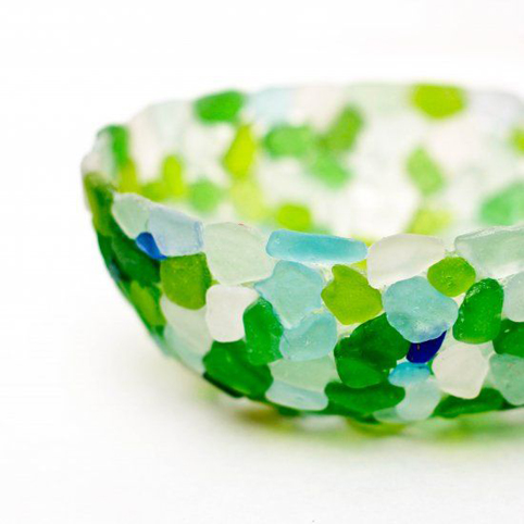 Con los cristales que encontramos en la orilla, con un poco de imaginación, puedes crear desde joyas a objetos cotidianos como este cuenco