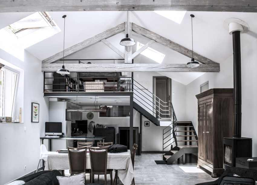 Una antigua fábrica de papel reconvertida en un loft contemporáneo con un presupuesto de apenas 100.000€. La residencia se encuentra en Anduze, una pequeña ciudad en la región de Gard, en el sur de Francia. La tipología tradicional de la región de Gard, en donde se ubica el proyecto, es la típica casa de campo provenzal. Por lo tanto, el nuevo proyecto refleja esta herencia, al tiempo que responde a las necesidades de la vida contemporánea de los habitantes. El diseño rústico es realmente encantador, con madera que se emplea en casi todo como material principal. Cuenta con un altillo o entresuelo que da al gran salón con ventanal, los puntos focales de la vivienda. Una paleta de color desgastado con tonos empolvados oscuros y un diseño ecléctico le aportan estilo singular a un espacio a dos aguas como este.