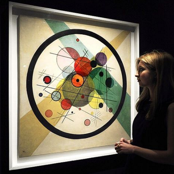 Muchas de estas creaciones están inspiradas en la obra del pintor ruso Vasily Kandinski. Aquí podemos ver un cuadro de este artista en la primera foto y la interpretación que Dinara ha hecho en versión repostera en las dos fotos siguientes. Simplemente espectacular: