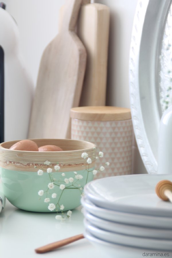 Hacía tiempo que darle un cambio a la cocina se había convertido en una necesidad para mí. Algunos utensilios ya estaban algo deteriorados por el uso y el paso del tiempo y ya iba siendo hora de renovar. Mis ganas de acentuaron cuando descubrí la tienda online miv interiores, ya que en ella encuentro cosas totalmente de mi gusto para decorar la casa. Como veis, la inversión no ha sido demasiada, me he limitado a cambiar algunas cosas que dejo siempre a la vista y que provocan en mí ciertas ganas de cocinar y de pasar por la cocina a todas horas. Un bote de porcelana y madera que uso a modo de salero, un pequeño bol de bambú en tono mint que estoy utilizando muchísimo y unos paños de cocina con un dibujo étnico que me encantan. Desde luego que la cocina ya tiene el aspecto Noretnic que andaba buscando. ¿Os gusta?