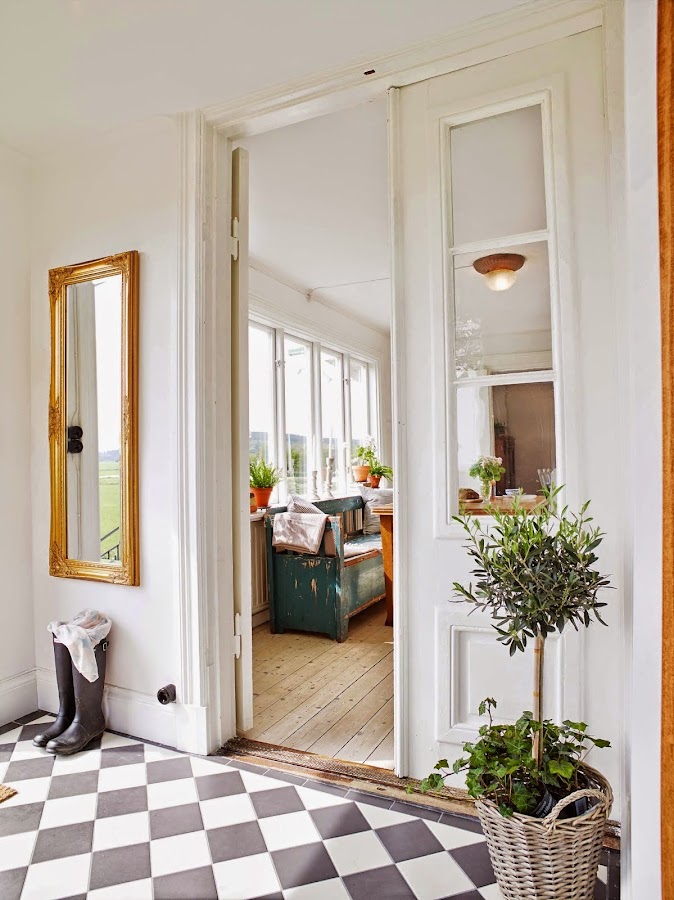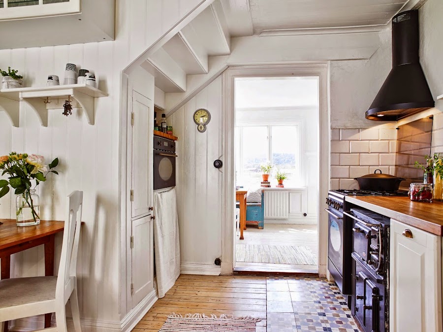 En el resto de la casa muebles vintage en muy buen estado que le dan carácter sin perder elegancia. Otra cosa que me encanta y que cada vez nos gusta más, es la mezcla del suelo cerámico y de madera. La verdad es que crea unos contrastes increiblemente llamativos a la vez que confortables y prácticos. Los dormitorios sencillos pero realmente no necesitan mucho más y un baño de los que ya no quedan. Ya veréis que combinaciones más prácticas en las que el estilo vintage se impone.