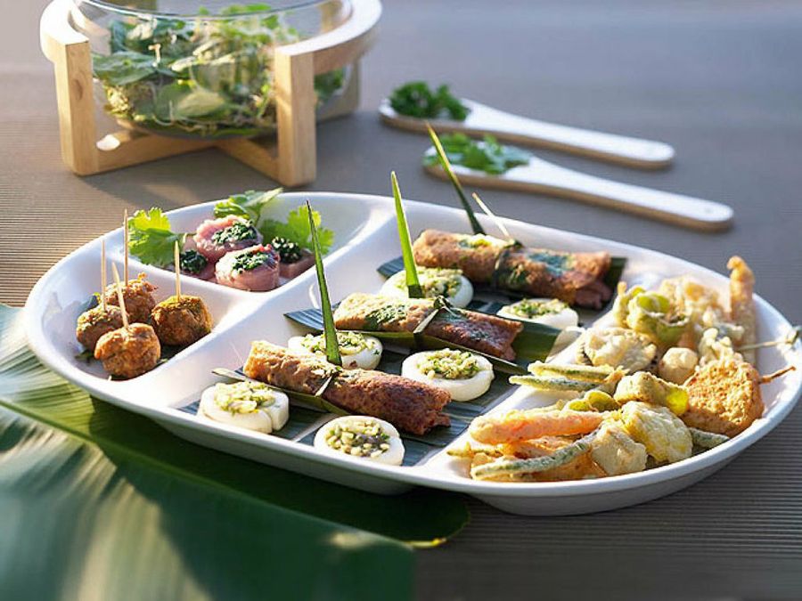 Los colores vibrantes y cálidos sirven para adornar una mesa en la que los detalles desempeñan un papel esencial. El naranja y el rojo conviven en absoluta armonía tal y como observamos en las imágenes, pero tú eres el quién decide combinarlos o centrar la presentación de los aperitivos en servicios monotonales.