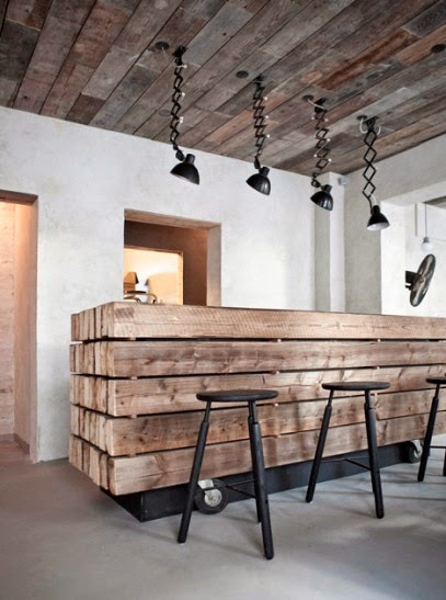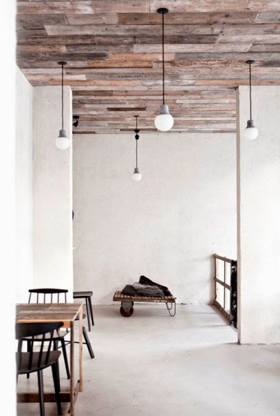 Volvemos a la carga, después de unos días de descanso, con muchas ideas, novedades e ilusión... Así que parece que los días de vacaciones han hecho efecto ;). Y para empezar, os traemos este restaurante decorado en grises y negros, al más puro estilo minimalista escandinavo, pero con el reconfortante uso de piezas industriales antiguas y maderas recuperadas, que es lo que consigue hacerlo más cálido y dotarlo de una fuerte personalidad.