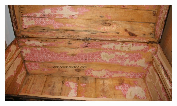 Me he propuesto , restaurar un baúl antiguo,del que me enamoré nada más verlo (ya sabéis que son mi perdición ya le hice un lavado de cara a uno con vinilo , pero esto son palabras mayores).