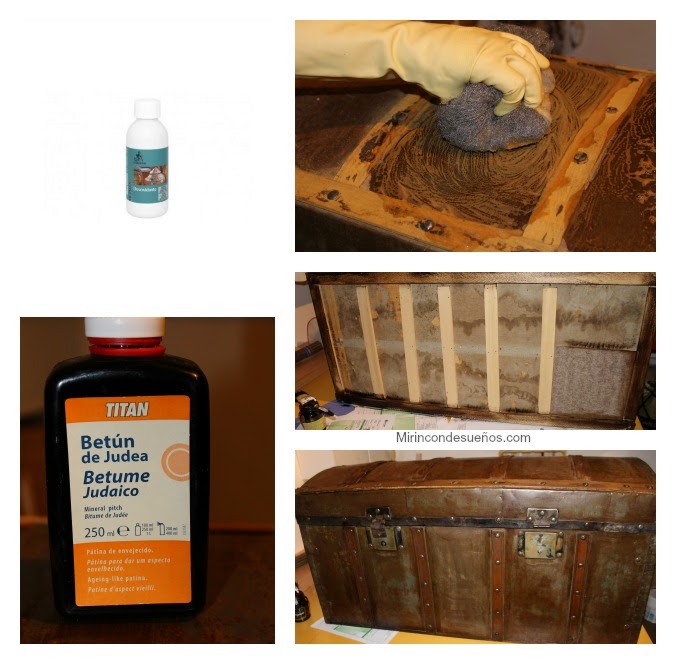 Por último, con betún de judea, teñimos los listones nuevos, y todos lo del baúl para igualar tonos.