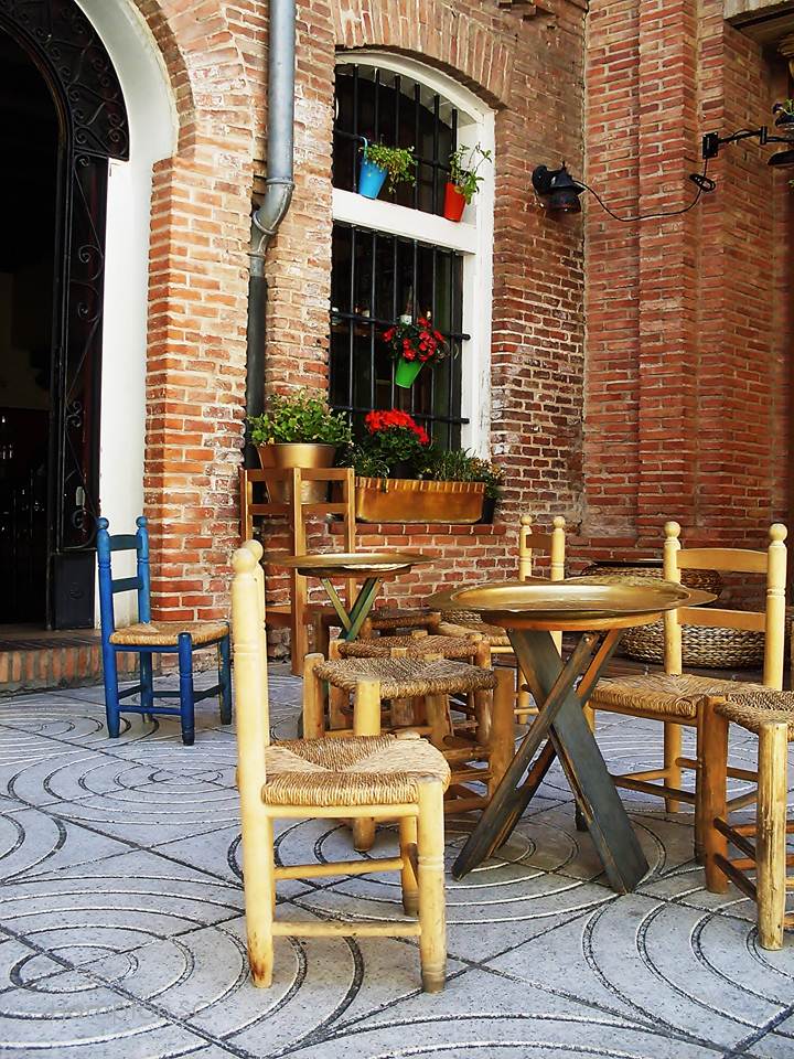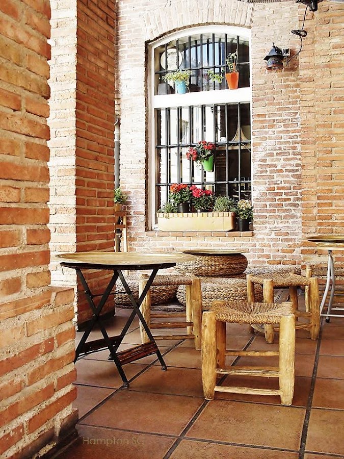 ladrillo visto y a la puerta y ventana con la clásica rejería