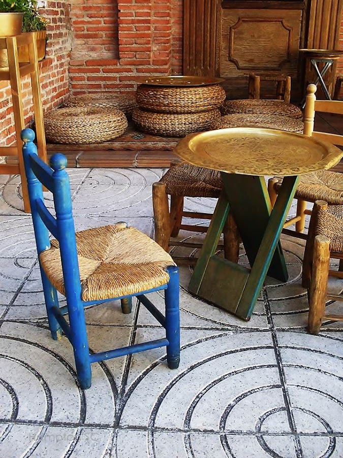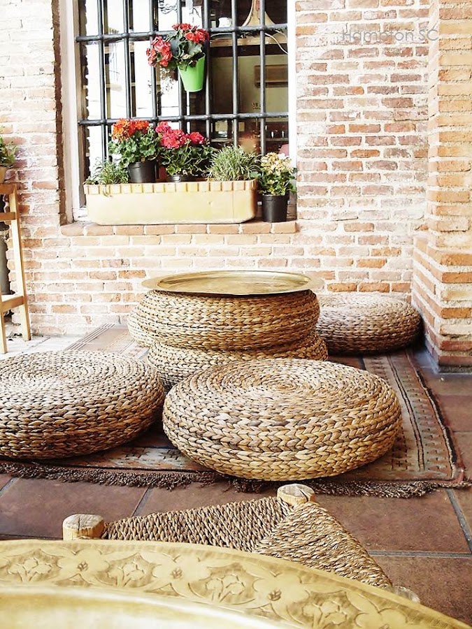 Un acogedor rincón exterior de inspiración árabe para el que se