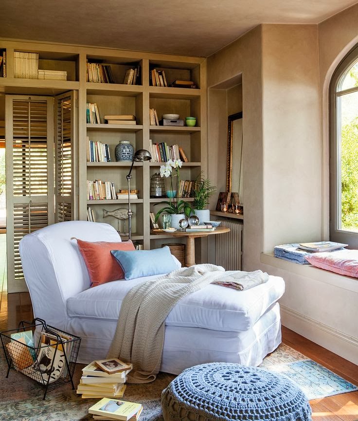 Hoy os quería hablar de un rincón que aparece en muchas de las casas que veo y que me encanta, ya que me parece un rincón muy relajante y acogedor. Os estoy hablando de los RINCONES DE LECTURA.