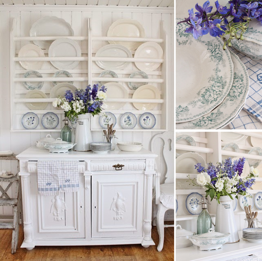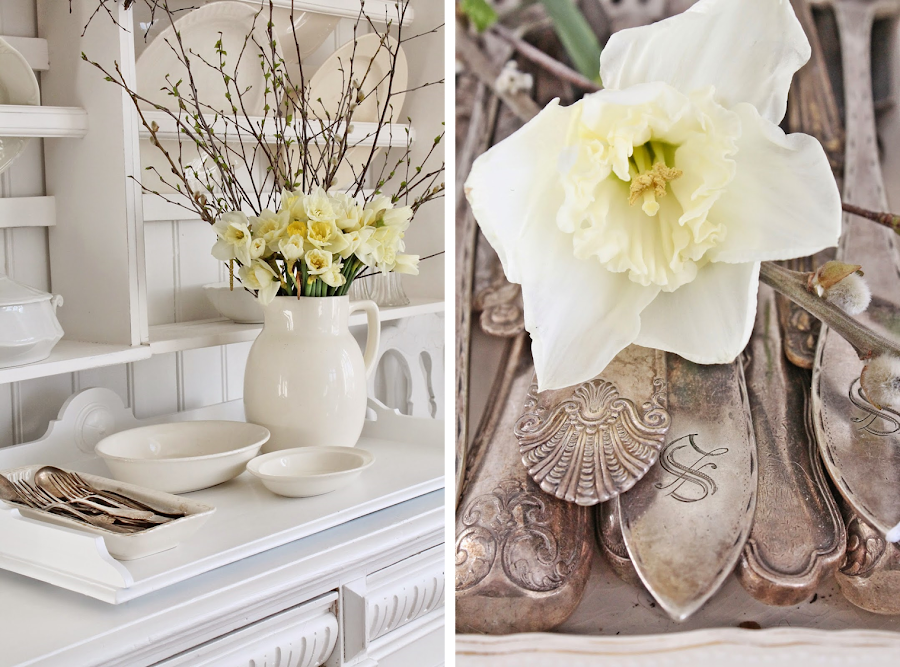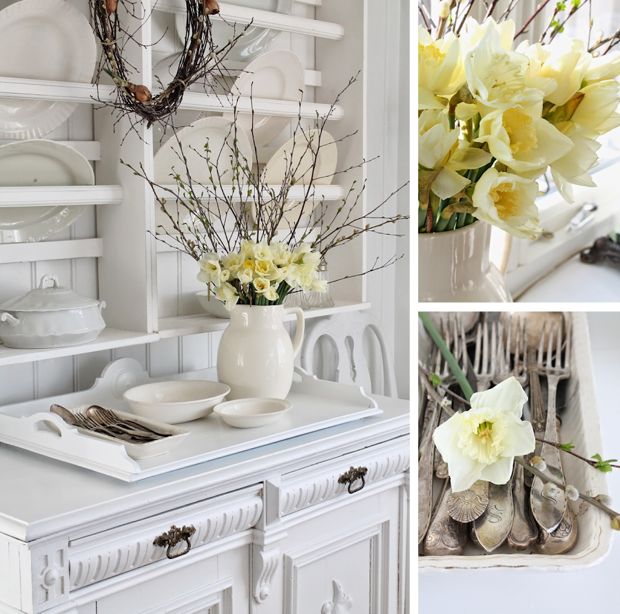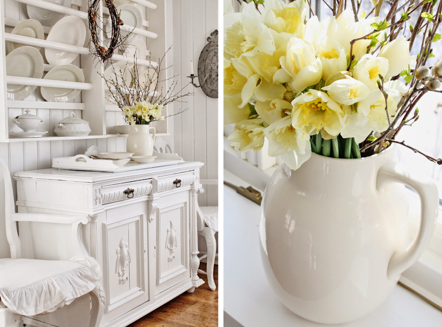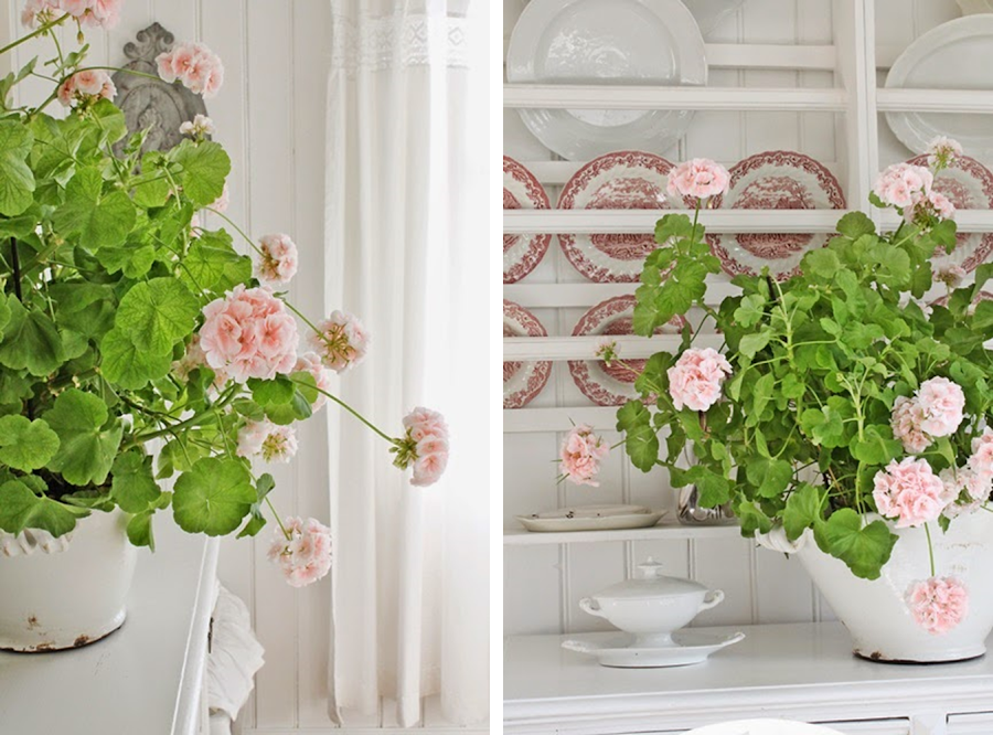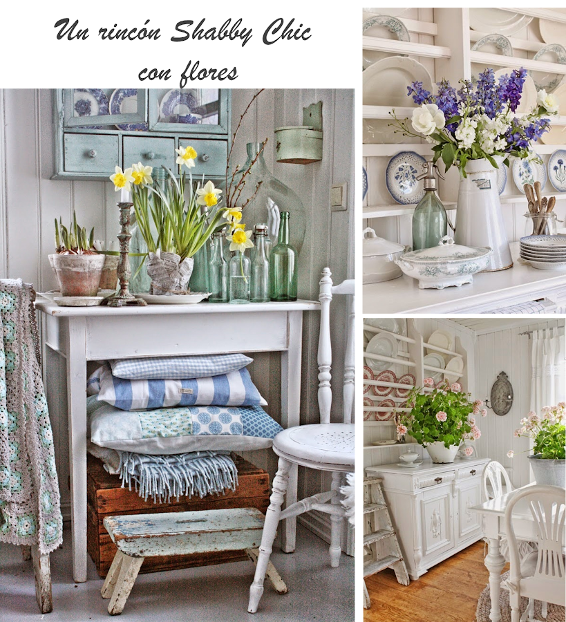 Ya estamos en Mayo, el mes de la flores, para celebrar que estamos en esta época del año os acerco estos cuatro rincones Shabby chic decorados con flores: narcisos, geranios, lilas y lirios. Cada flor transmite una tonalidad y aroma especial a cada rincón, pero todas añaden mas delicadeza a este ya de por si estilo romántico y campestre.