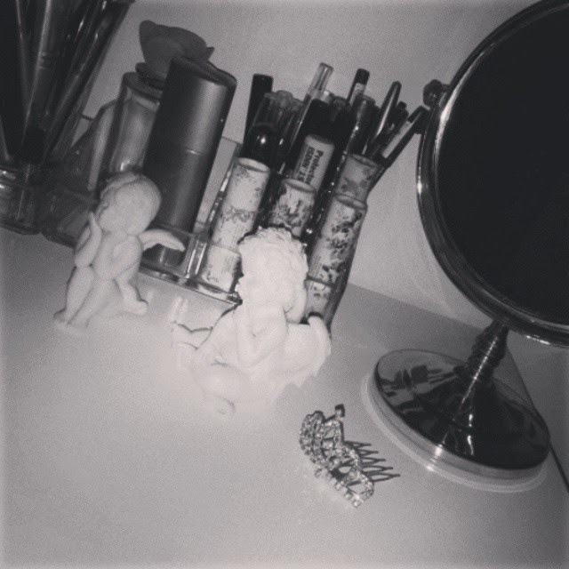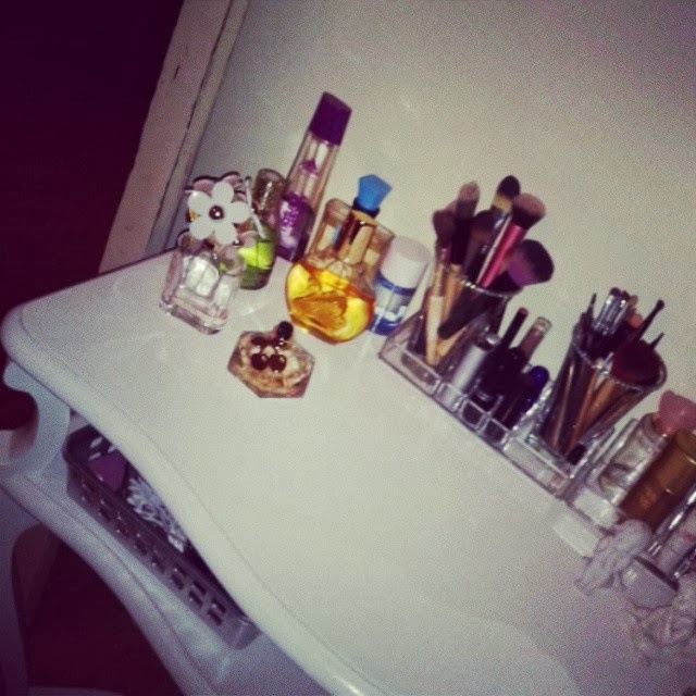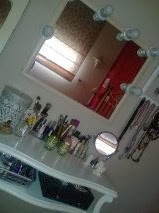 Aparte de mi rincon de bricolage....de taller de bisuteria....de almacenamientosintonnison de revistas....jajjaja ...tengo un corner de make up....antes lo tenia en otra habitación ...y en color pistacho ...siiiii ;)....y ahora está en un rinconcito de mi dormitorio y es blanco.....en fin ....que no me aburro como podeis ver jajjaj....