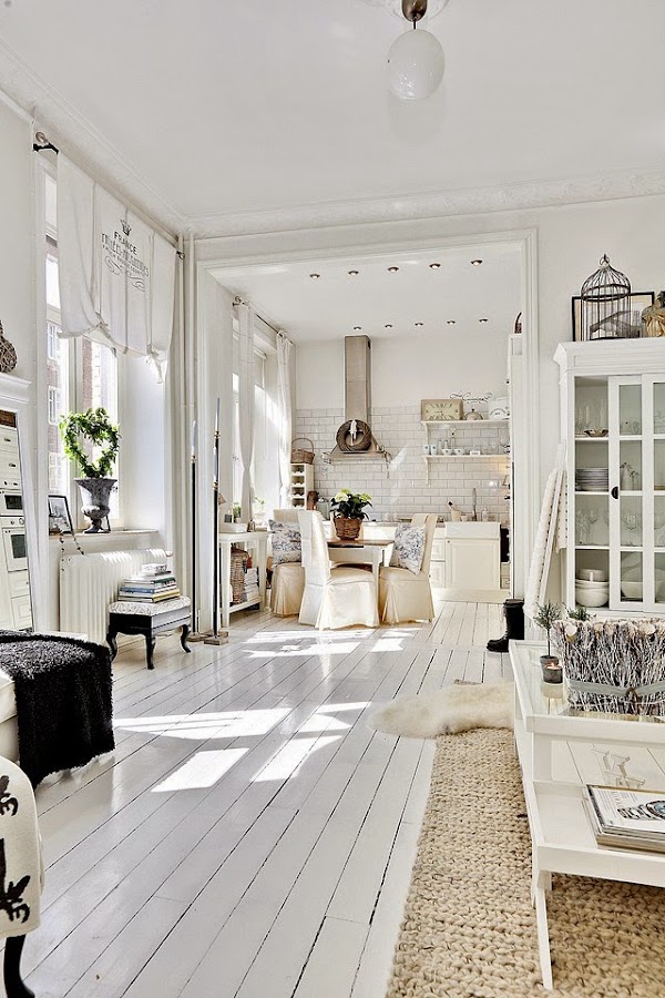 Hoy vamos a ver como en un apartamento nórdico contrasta el carácter típico de las casas escandinavas con la decoración más romántica de influencia afrancesada y deja un resultado verdaderamente atractivo. Para empezar la gama de colores es suave y relajada en cualquier espacio, desde el salón hasta el dormitorio pasando por una cocina llena de detalles encantadores.