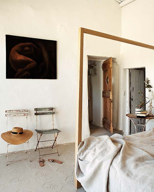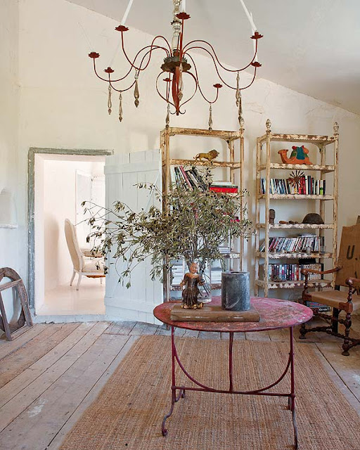 La casa se encuentra en un pueblito de la Provenza , estaba deshabitada y su propietario, un inglés que se dedica a las antigüedades la rehabilitó con exquisito gusto , creando una casa ecléctica , que emana sencillez , respetuosa con su pasado y con la mayoría de objetos y muebles recuperados , una delicia para descansar unos días , ya que se puede alquilar...........