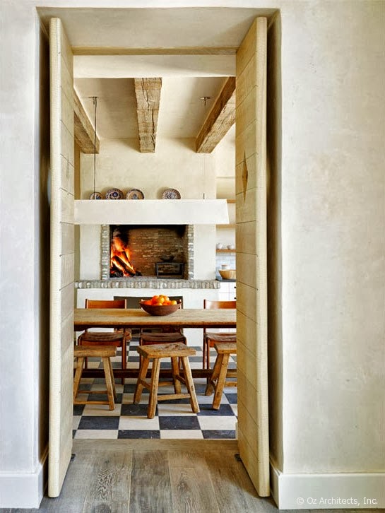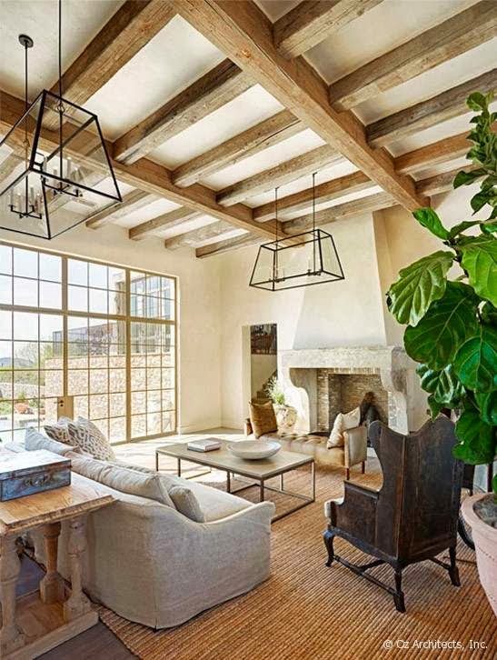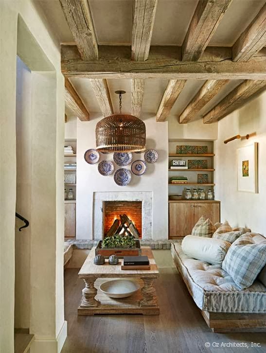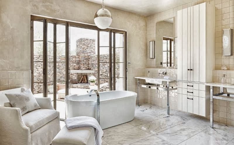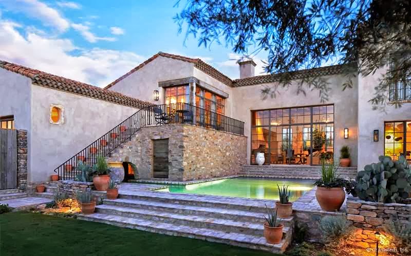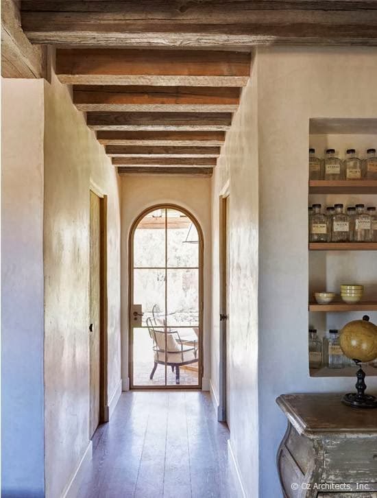 Una suave atmósfera envuelve esta granja situada en Arizona y decorada con estilo mediterráneo. Según vas entrando en ella descubres como las vigas de madera, los tejidos naturales, los muebles con una pátina envejecida, la piedra de las chimeneas, dan forma a una casa rústica pero muy chic. Imágenes evocadoras con las que os deseo un feliz martes.
