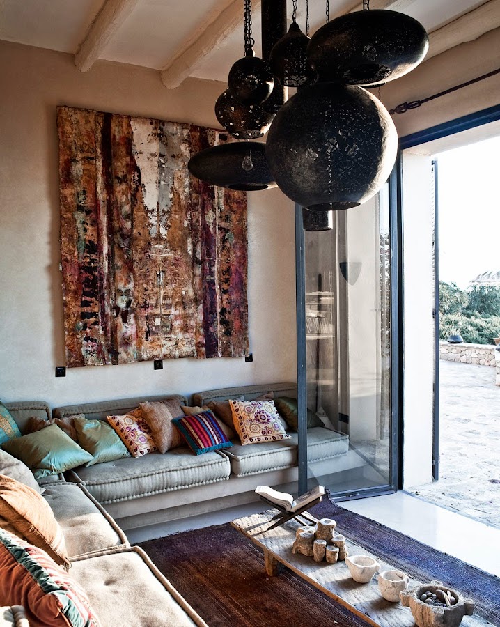 Pues este rinconcito que os dejo aquí hoy, es como un pequeño paraiso dentro de la isla de Mallorca. Se trata de una finca rústica basada en una decoración boho. Elementos orientales, muebles de madera y toques con mucho color, se mezclan con las líneas más puras del diseño actual.