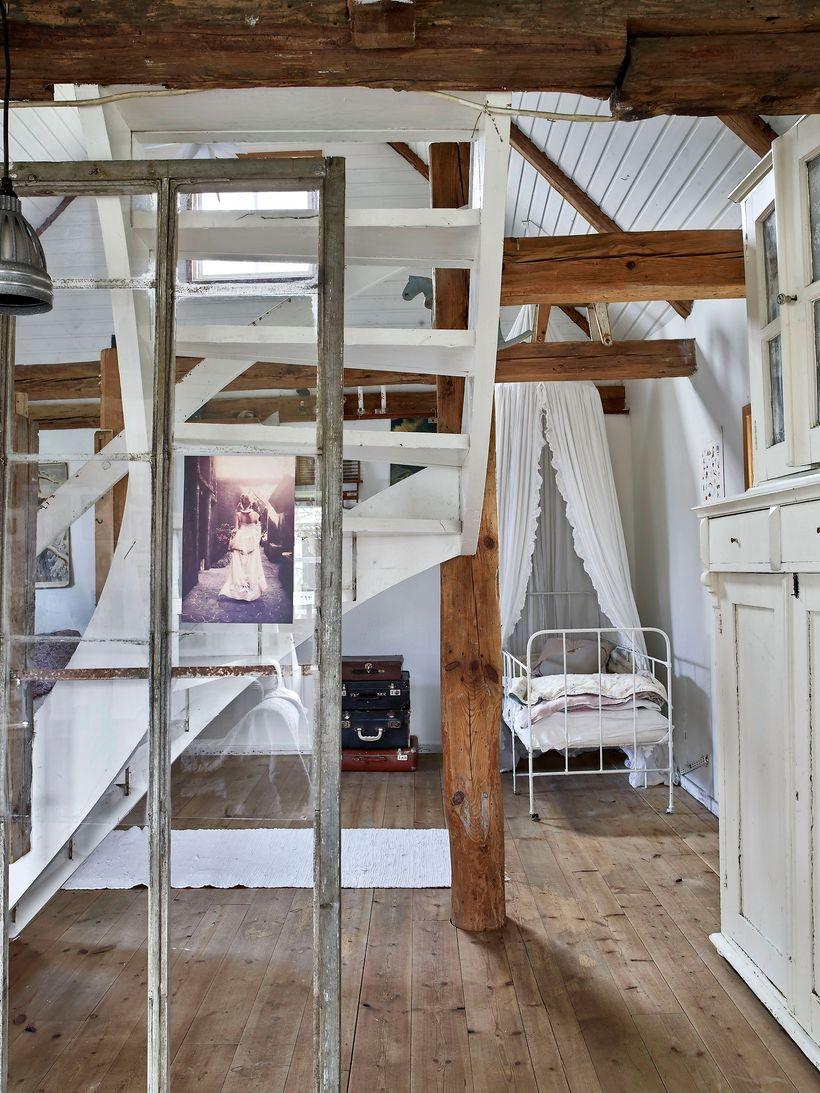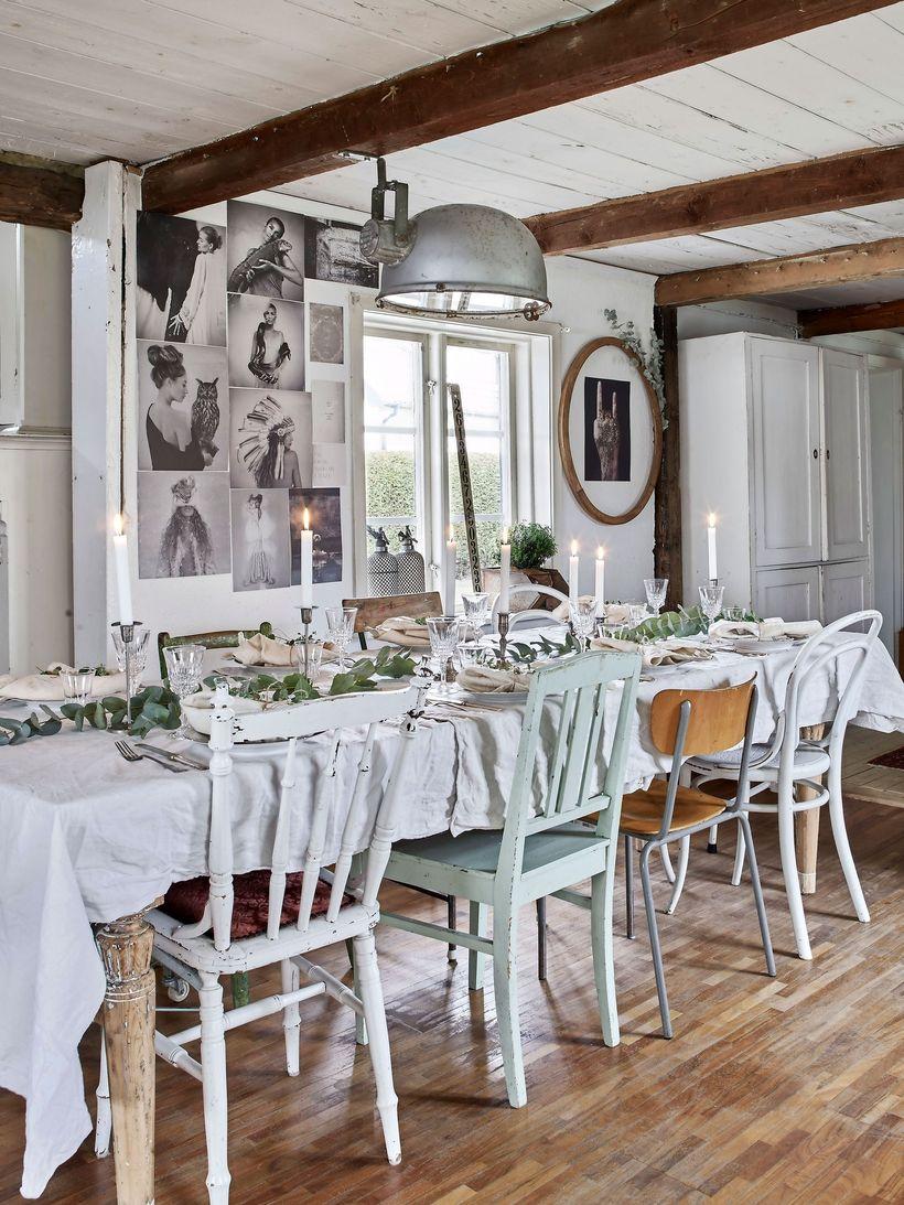 La clave de esta vivienda es el reciclaje y la restauración. En este interior se ha respetado la estructura original, recuperando las antiguas vigas, sacando el suelo a la vista y conservando las paredes. Se han sustituido las tonalidades más oscuras, propias de los ambientes rústicos, por colores claros y luminosos para potenciar la luz natural de cada estancia. La sencillez del estilo nórdico puede reflejarse también en elementos de estilo rústico. Sólo con aplicar una capa de pintura a esas piezas tan características, como la mesa y las sillas de comedor de madera de pino, para añadir la calidez y singularidad que estabas buscando. Toda esta vivienda es un reflejo de ello. La cocina es uno de mis espacios preferidos. Se trata de usar el contraste para ganar en armonía.