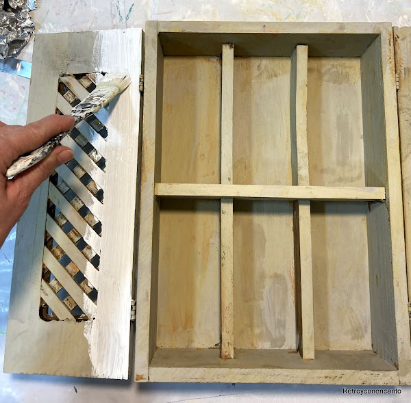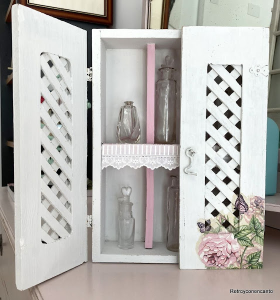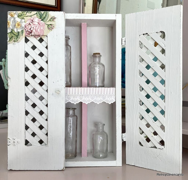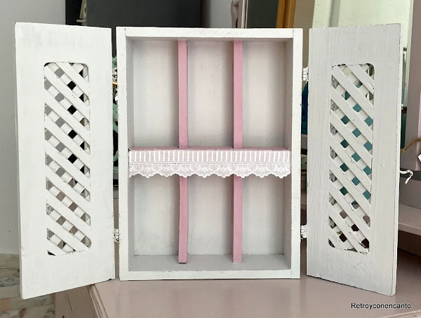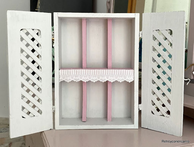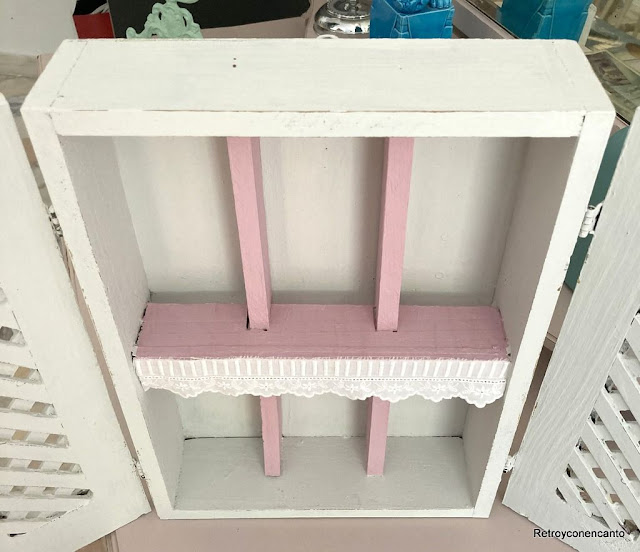 Y así quedó, con esa puntilla de encaje que le añadimos al estante central.
