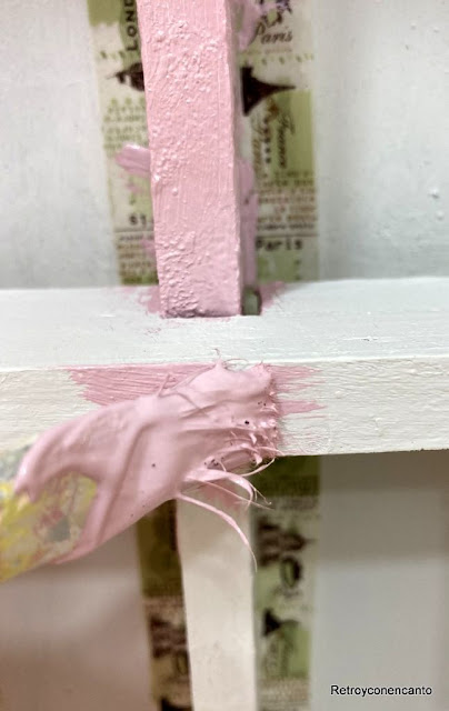No solemos planificar mucho los trabajos, sobre la marcha vamos resolviendo según nos llega la inspiración... El blanco y el rosa formaron parte de las musas que nos "iluminaron" para el interior de nuestro pequeño auxiliar.