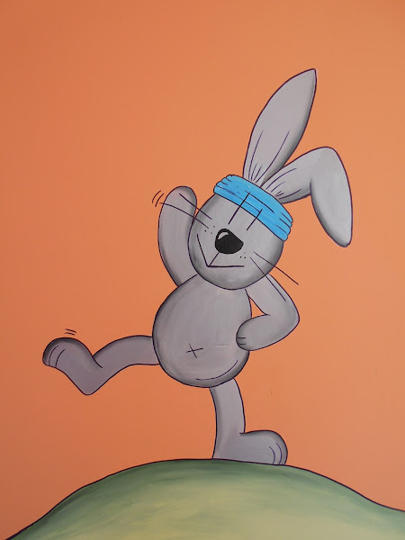 Con nuestro amigo el conejo Yep haciendo ejercicio, y Bel y Ona con unos bebés en sus portabebés... Éste fue el resultado. El gato Max con su corazón, ya fue cosecha propia.