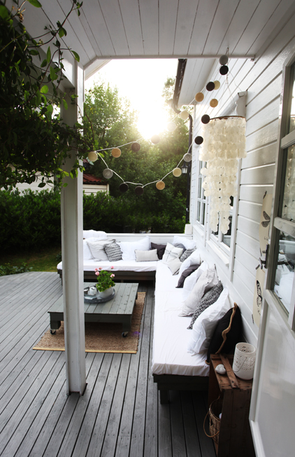 En el ecuador del verano las tardes largas y calurosas se hacen casi un suplicio en la gran ciudad, navegando encontré esta maravillosa terraza DIY y low cost. Su mobiliario esta hecho principalmente de palets pintados con una pintura especial para madera en gris oscura.