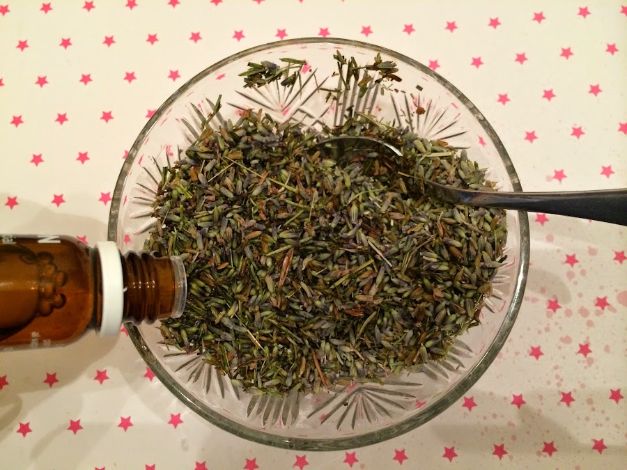 - Añade el aceite esencial hasta que las flores estén un poco                húmedas (no deben estar empapadas) y remueve bien.